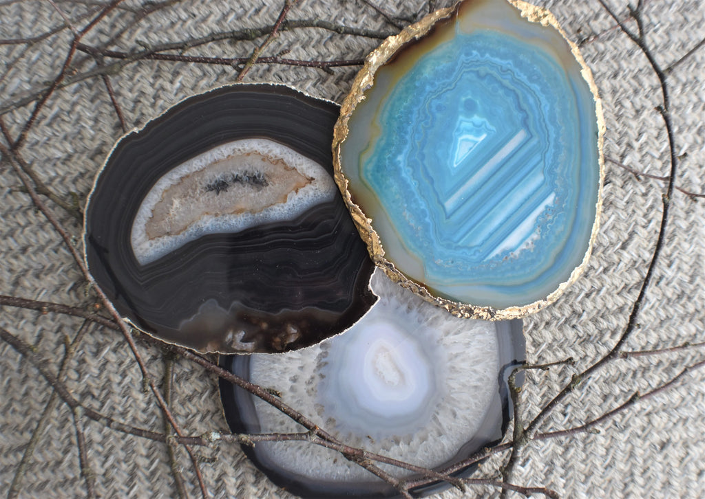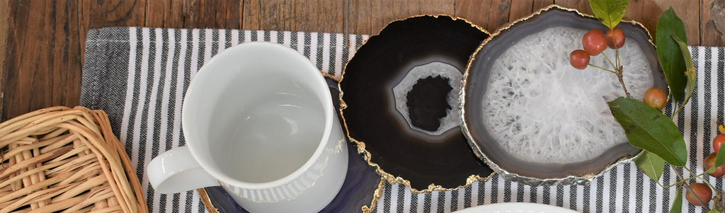 Handcrafted gemstone coasters are sure to make a statement no matter the occasion. Keep it simple with natural colors and trim, put elegance on display with silver and gold electroplating, or show off your style with bright color options.