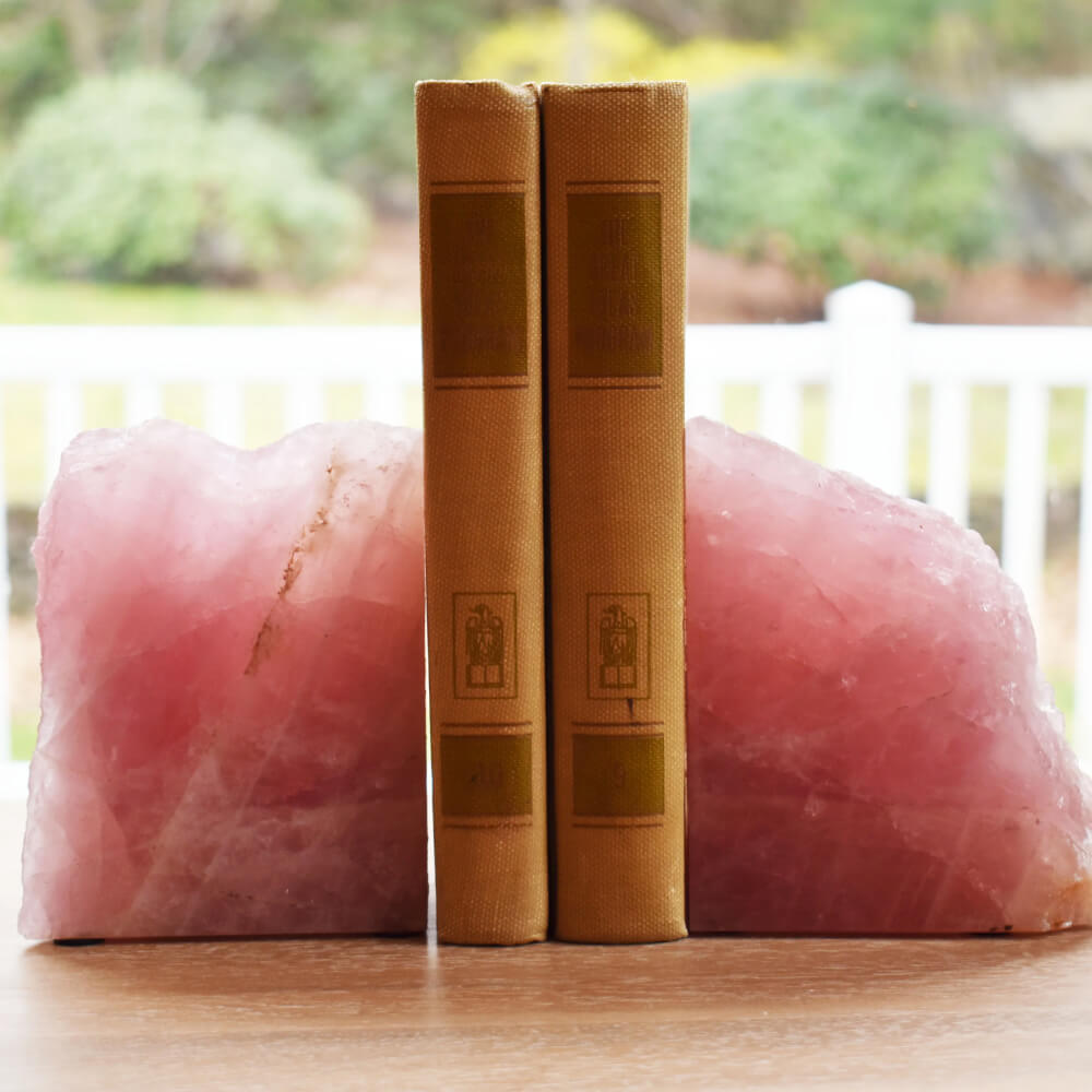 Fall in love with these gorgeous Rose Quartz Bookends. The soft pink stone brings a chic and stylish look to your bookshelf. Heavy duty enough to keep your favorite books in place, these beautiful book stoppers will keep your shelves looking their best. Perfect for any bookworm’s library!